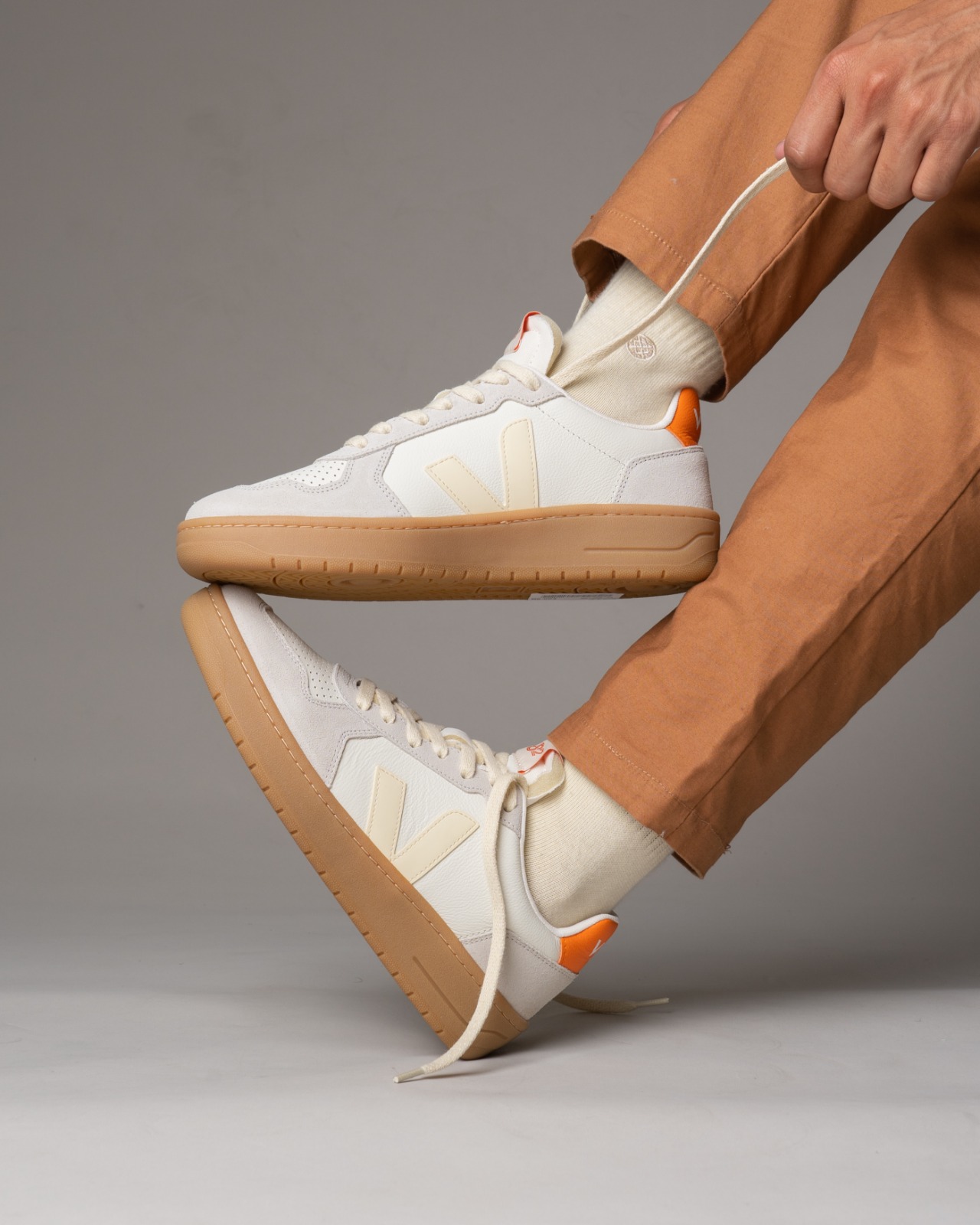 Veja V-82 LEATHER PURE CALCAIRE FURY VE3320758A BEIGE/NARANJA